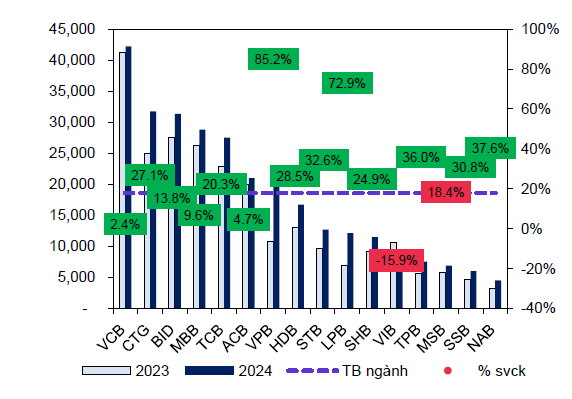 Lợi nhuận ròng của các ngân hàng niên yết năm 2024 tăng 17.5%