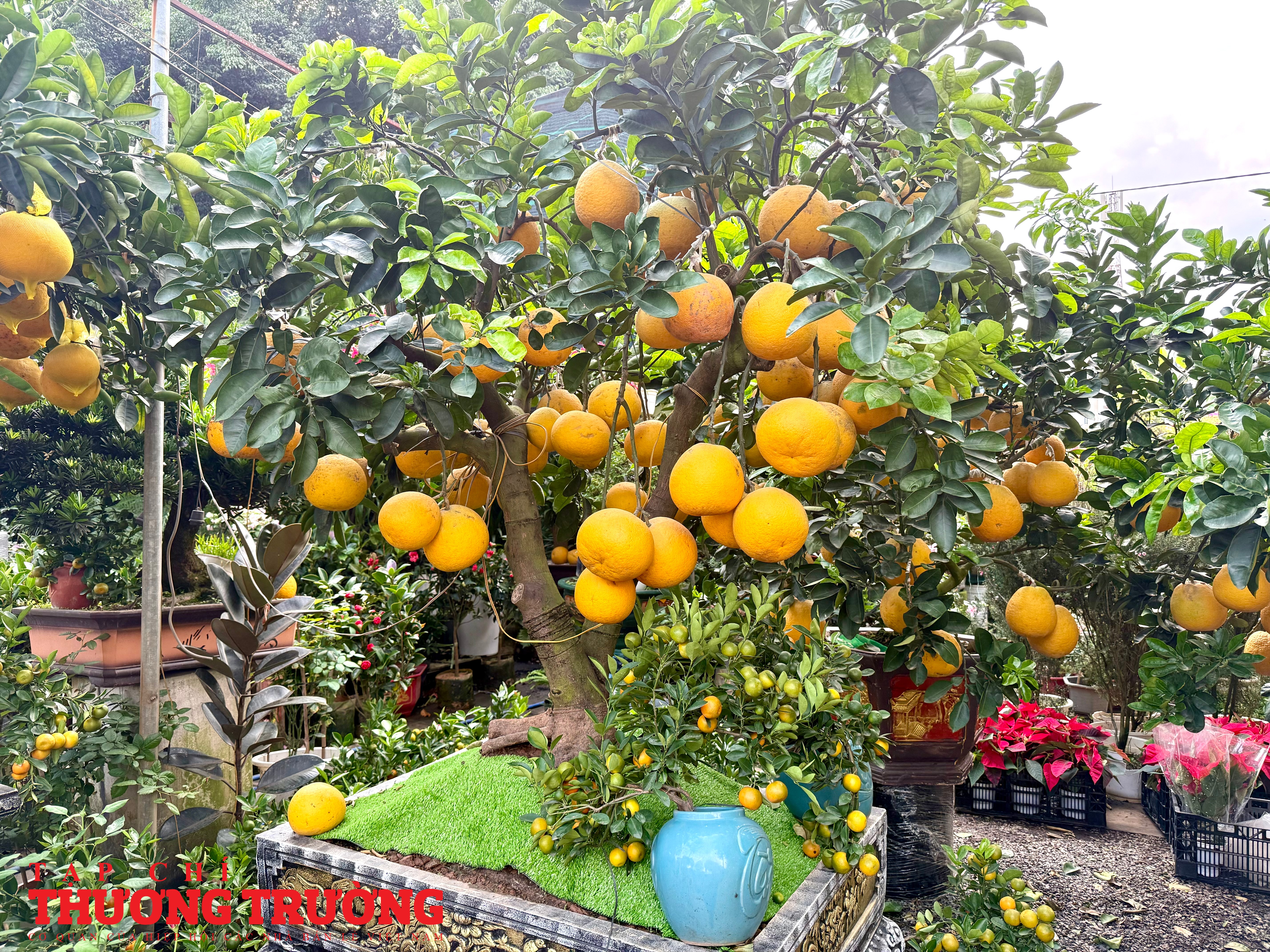 Những chậu bưởi Diễn “khủng”, cao trên 2 m, quả dày đặc, được nhiều doanh nghiệp và cơ quan chọn mua để trang trí sảnh trong dịp Tết.