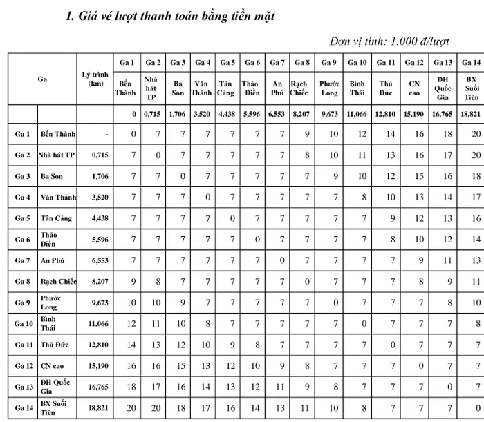 Giá vé trên đã bao gồm bảo hiểm thân thể hành khách sử dụng dịch vụ vận tải hành khách công cộng bằng tàu điện trên tuyến đường sắt đô thị số 1 Bến Thành – Suối Tiên.