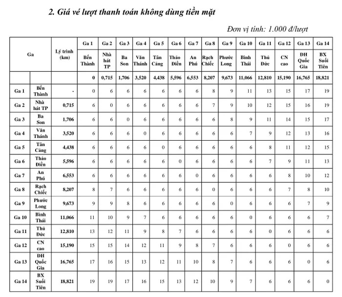 Giá vé đi tàu Metro số 1 từ 6.000 - 20.000 đồng/lượt, tùy hình thức thanh toán, quãng đường di chuyển, riêng vé ngày cao nhất 40.000 đồng/vé, không giới hạn lượt đi.