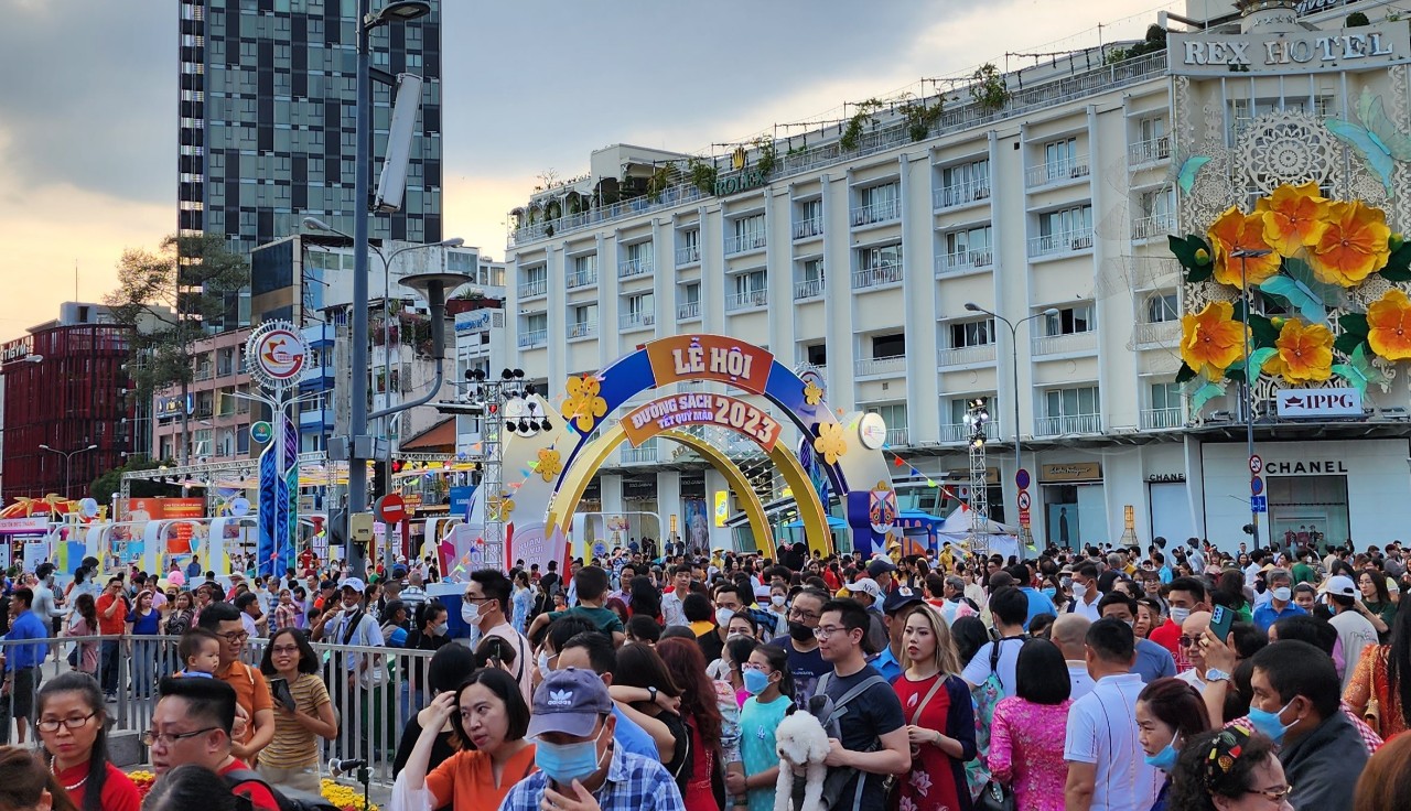 Với chủ đề “Thành phố Hồ Chí Minh - Xuân an vui, xuân thịnh vượng”, đường sách Tết Quý Mão 2023 diễn ra trên tuyến đường Lê Lợi (quận 1) là đường sách Tết có quy mô lớn nhất từ trước đến nay.