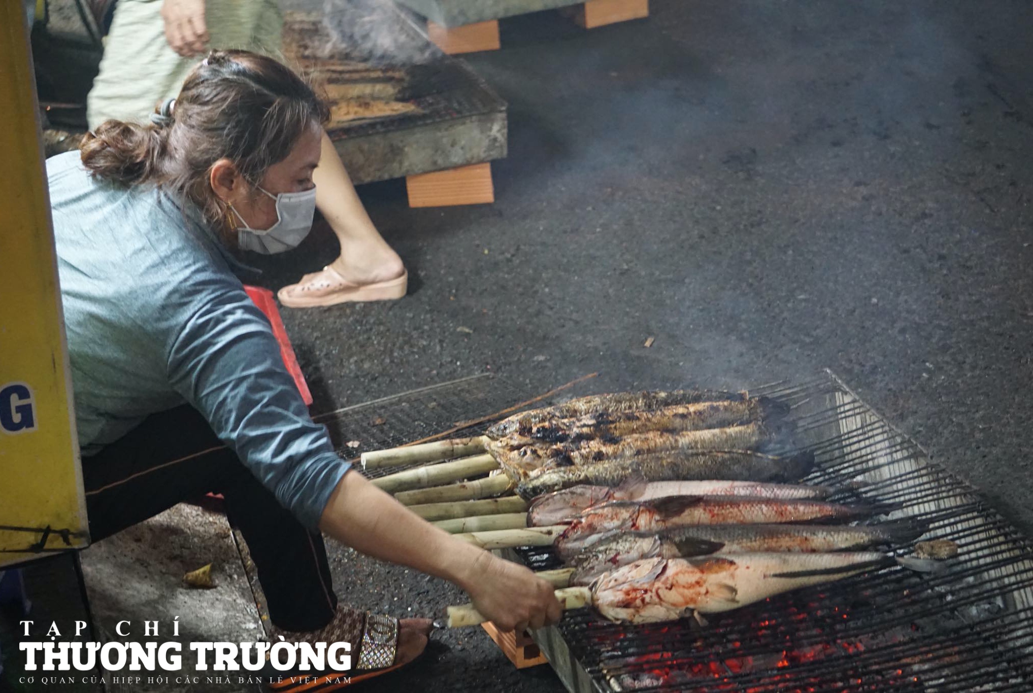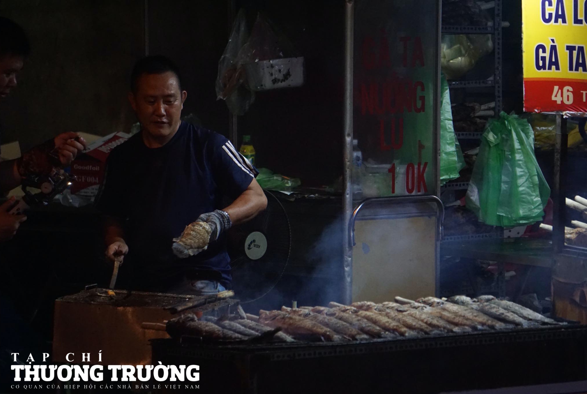 Từ tối 18/2 (mùng 9 tháng Giêng) tại đường Tân Kỳ Tân Quý (quận Tân Phú, TP.HCM), nhiều hàng quán bán các lóc nướng tất bật người làm, khói từ than nướng cá nghi ngút cả tuyến phố.