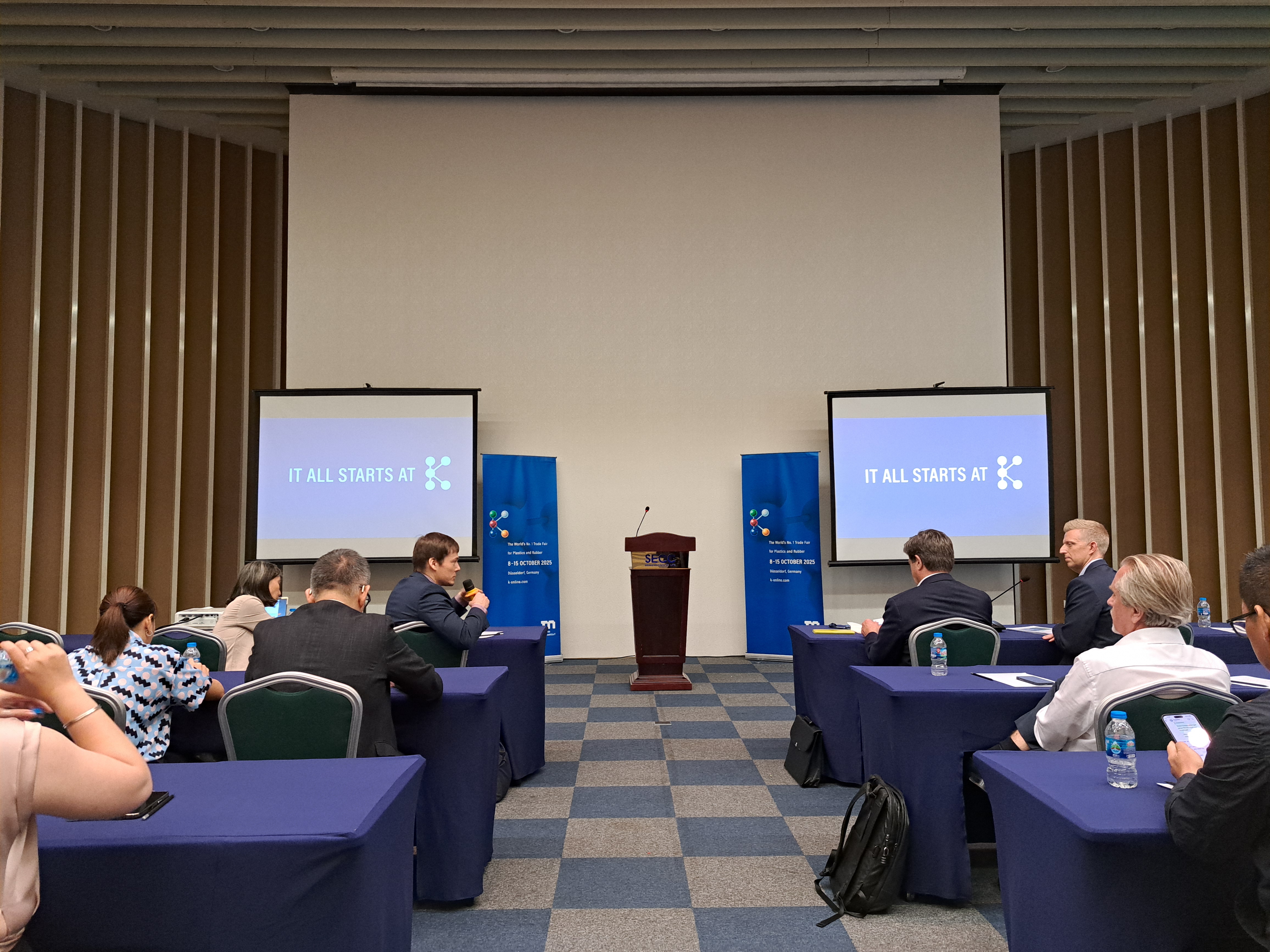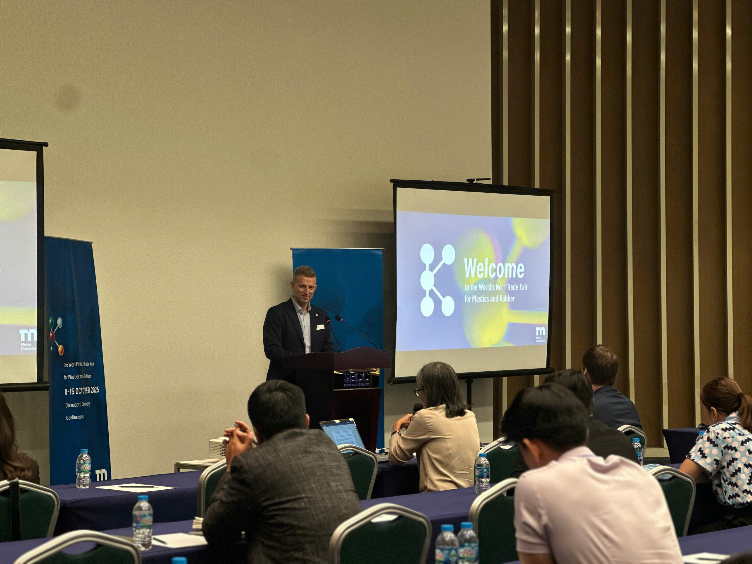 Ngày 19/3/2025 tại Trung tâm Hội chợ và Triển lãm Sài Gòn (SECC) diễn ra sự kiện Khám phá Hội chợ K với sự tham gia của đại diện Phòng Công nghiệp và Thương mại Đức tại Việt Nam, ông Thomas Franken, Giám đốc Triển lãm K, Ông Ulrich Reifenhauser, Chủ tịch Ban cố vấn các nhà triển lãm K 2025 kiêm CSO Tập đoàn Reifenhauser cùng thảo luận, phân tích về ngành nhựa và cao su.