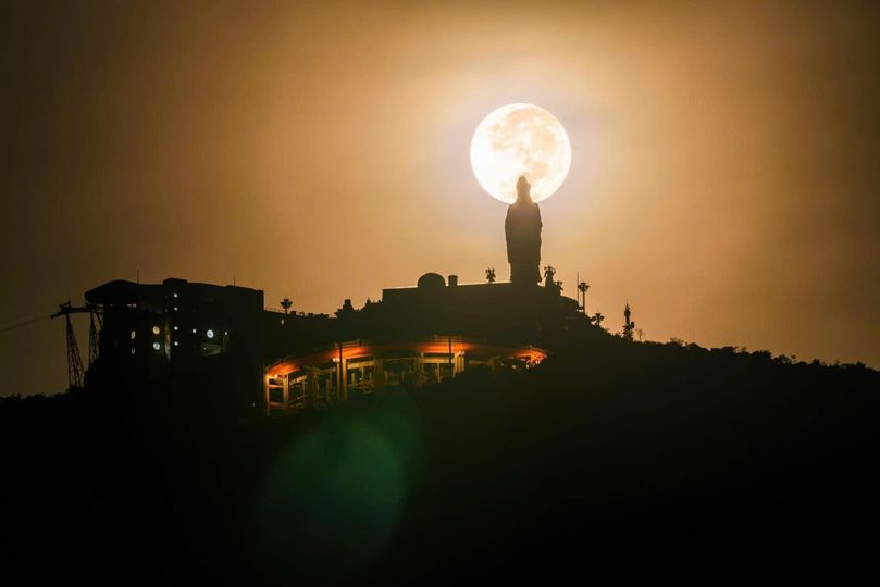 Đỉnh núi Bà Đen dưới ánh trăng đêm trung thu. Ảnh: Nguyễn Minh Thiên