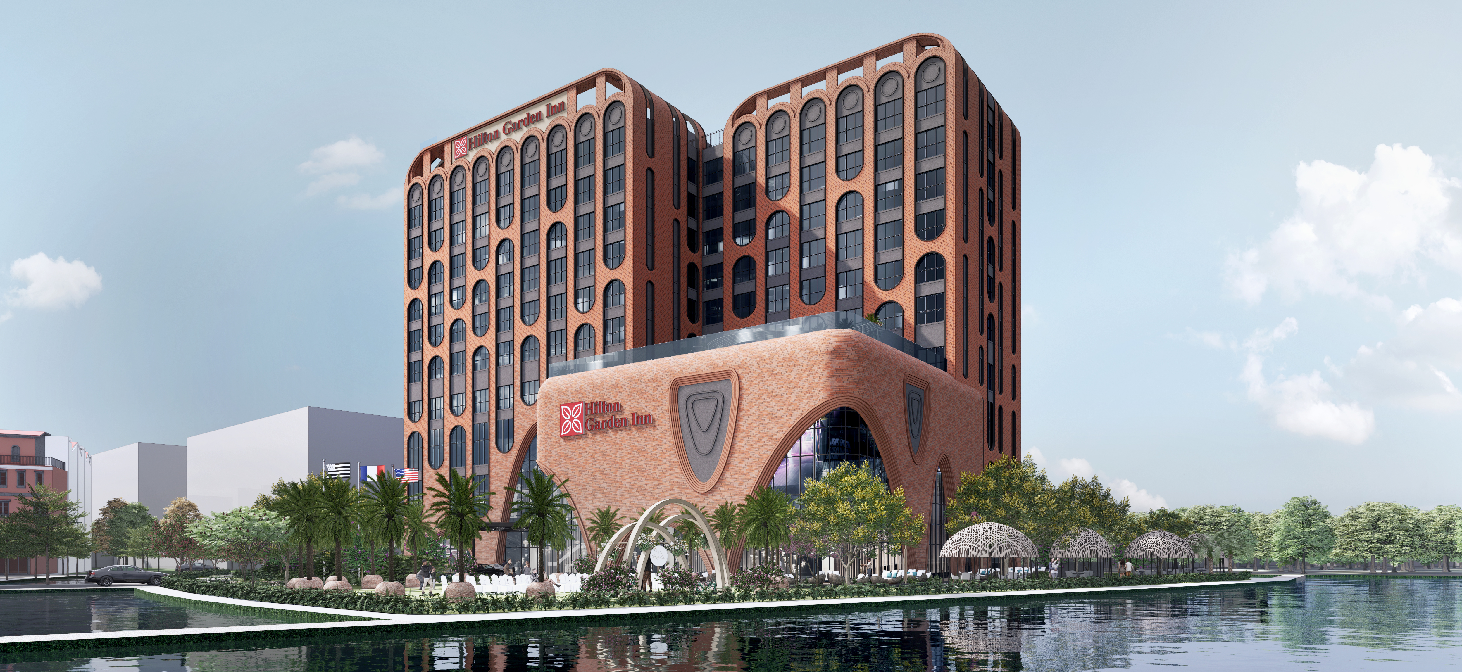 Song song với công trình nhà ở xã hội, dịp này T&T Group cũng khởi công xây dựng tòa khách sạn cao 10 tầng nổi và 1 tầng hầm, với quy mô 200 phòng mang thương hiệu quốc tế Hilton Garden Inn. Lấy cảm hứng từ những đường nét cong tự nhiên của sông nước miền Nam Bộ, cùng đặc trưng văn hóa bản địa, các làng nghề truyền thống như “Vương quốc đỏ” - làng gạch Mang Thít điển hình với cấu trúc mái vòm, T&T Group đã thổi hồn vào chất liệu và đường nét kiến trúc mềm mại, thanh lịch của công trình. Với dự án này, T&T Group cũng đã hợp tác cùng với Hilton – Tập đoàn khách sạn hàng đầu thế giới để vận hành quản lý tòa khách sạn theo tiêu chuẩn quốc tế. Trong tương lai, tỉnh Vĩnh Long sẽ có một công trình khách sạn với điểm nhấn kiến trúc độc đáo; vừa hiện đại, vừa mang đậm văn hóa bản sắc địa phương; đồng thời đáp ứng đầy đủ những dịch vụ tiện nghi, cao cấp cho đông đảo du khách trong nước và quốc tế.