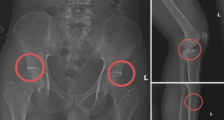 Bản phim chụp XQ một số tổn thương xương do đối tượng tạo ra nhằm trục lợi tiền bảo hiểm nhân thọ.