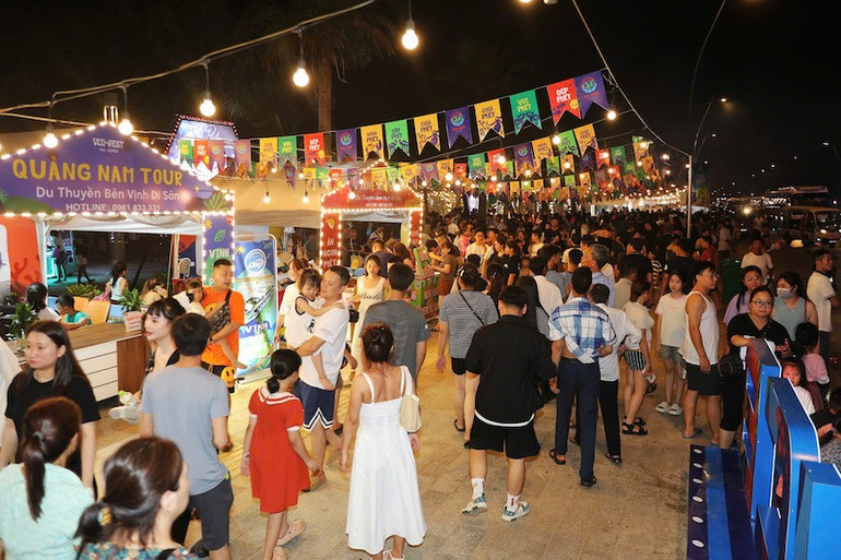 Vui-Fest mang đến sự khác biệt từ chính không gian bên vịnh với cách bố trí các gian hàng thuận tiện giúp du khách vừa trải nghiệm ẩm thực, vừa có thể dạo bộ ngắm biển đêm, vừa chọn được cho mình một góc ngồi lý tưởng để chờ đón khoảnh khắc pháo hoa thắp sáng cả đường chân trời vịnh.