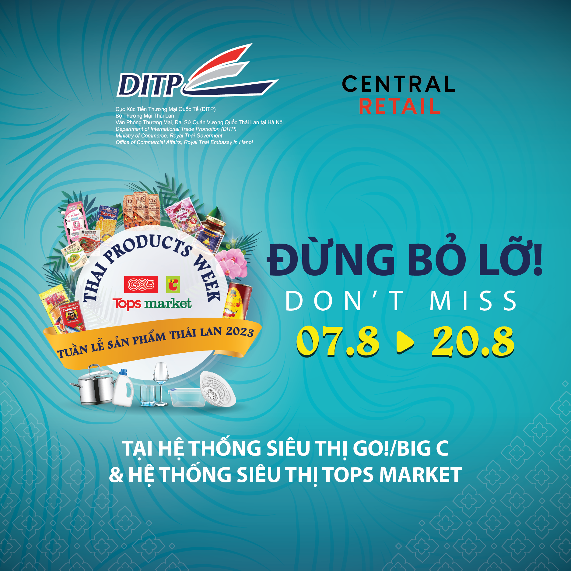 Sự kiện thường niên quảng bá hàng Thái Lan nhập khẩu do Cục Xúc tiến Thương mại Quốc tế (DITP), Bộ Thương mại Thái Lan - Văn phòng Thương Mại, Đại sứ quán Vương Quốc Thái Lan tại Hà Nội phối hợp với Central Retail Việt Nam tổ chức với mục đích giới thiệu đến người tiêu dùng Việt Nam những sản phẩm Thái Lan nhập khẩu tại chuỗi siêu thị GO!/BIG C và TOPS MARKET.