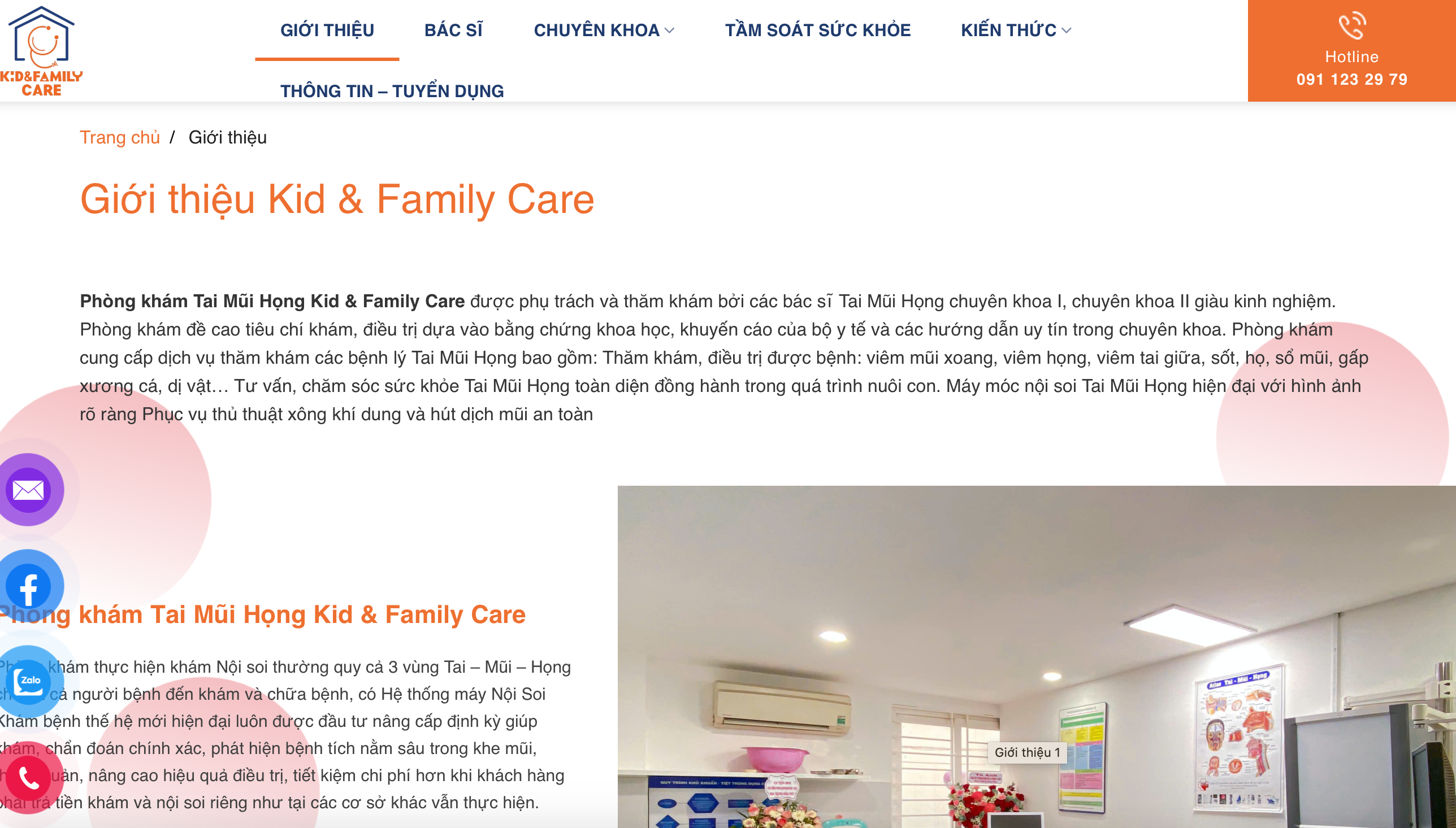 Theo thông tin giới thiệu, hệ thống Kid & Family Care cung cấp nhiều dịch vụ chuyên khoa tai mũi họng cho trẻ em như nội soi, điều trị viêm xoang, viêm tai giữa, xông khí dung và xử lý dị vật đường thở.