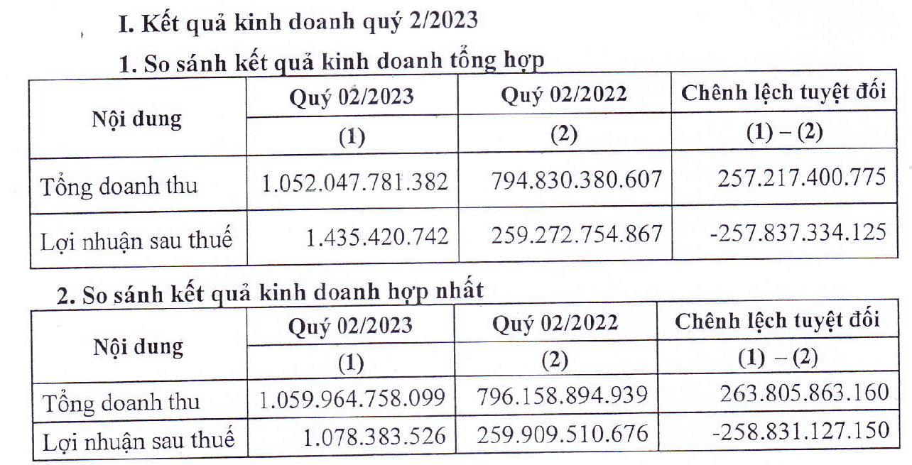Doanh thu tài chính trong kỳ của công ty tăng gần 7% lên 17 tỷ đồng. Chi phí tài chính giảm 70,6%, xuống còn 7,06 tỷ đồng; Chi phí bán hàng giảm 33% còn 15,8 tỷ đồng; Chi phí quản lý doanh nghiệp giảm 25,3% về 18,9 tỷ đồng.