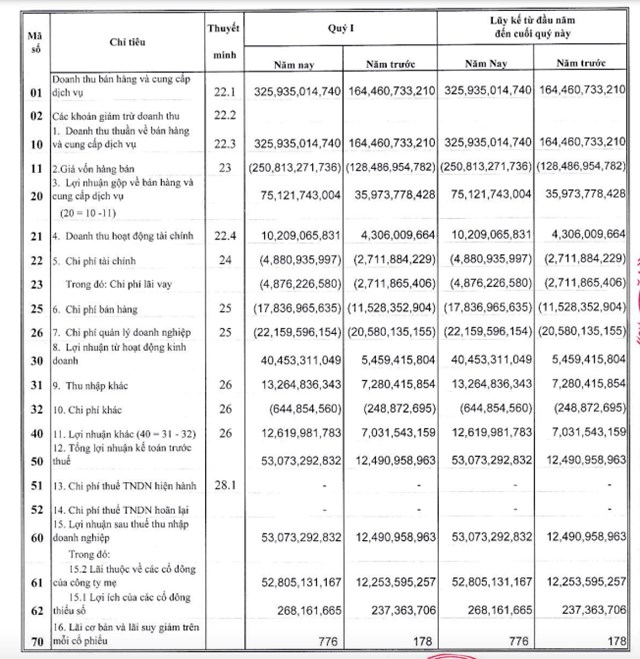 Sau khi trừ chi phí, lợi nhuận sau thuế của VNS ghi nhận đạt 53 tỷ đồng, tăng hơn 320% so với cùng kỳ.