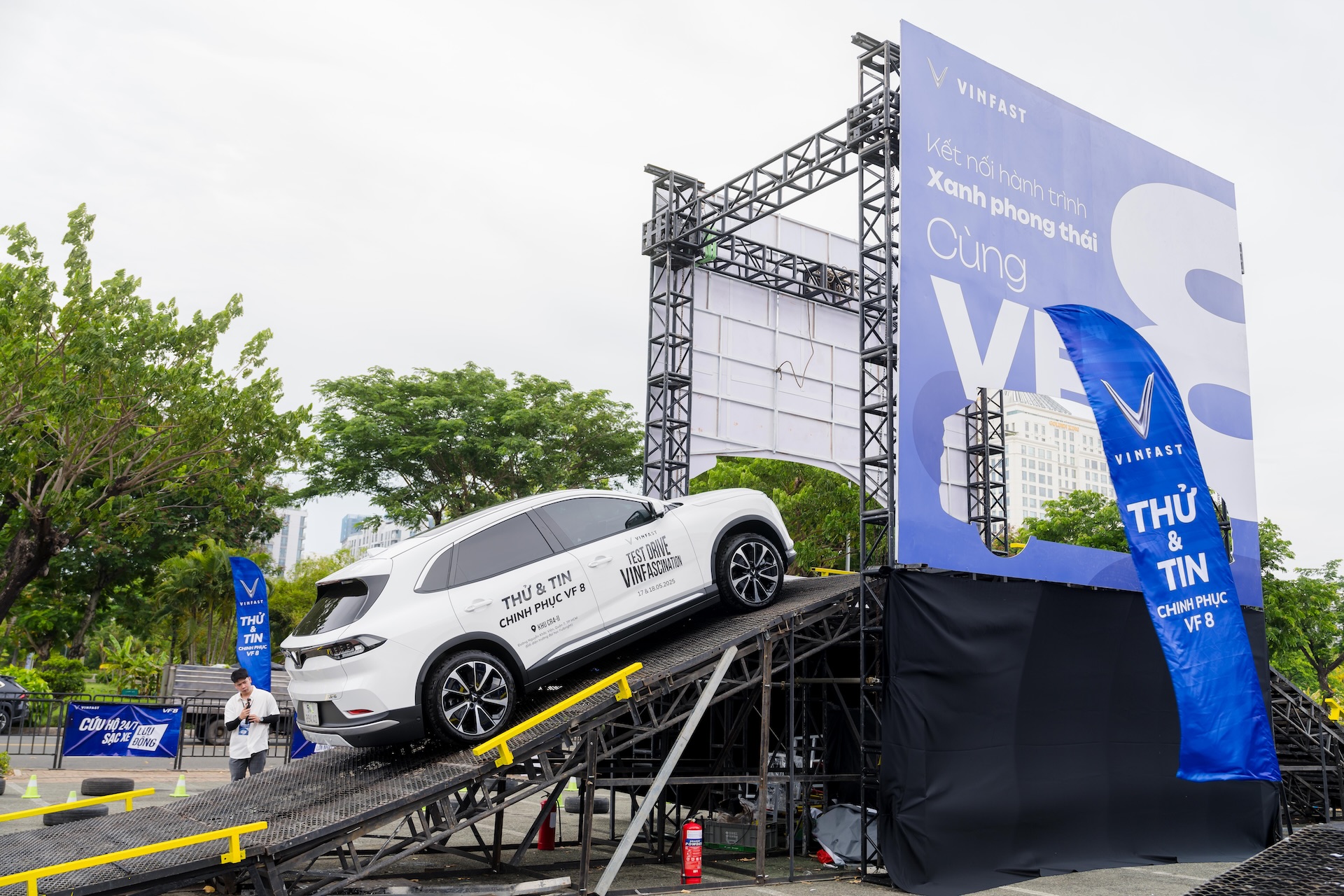 Anh Vũ Mạnh , sống tại TP.HCM, đánh giá những bài thử tại sự kiện “Thử và Tin - Chinh phục VF 8” rất thực tế. Bài test leo dốc cầu khiến anh nhớ đến những con dốc cao ở Bảo Lộc, Đà Lạt (Lâm Đồng), trong khi bài test lội nước có thể hình dung tới những con đường ngập lụt ở TP.HCM vào mùa mưa.