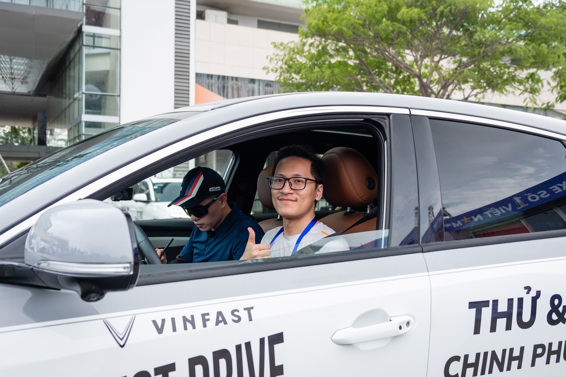 Sau khi hoàn thành các bài thử, anh Đặng Đức An, sống tại TP.HCM, cũng đánh giá cao năng lực của VF 8. Trong bài test zigzag, đường gập ghềnh và tăng tốc, anh cảm nhận VF 8 đầm chắc và bám đường tốt, đặc biệt khi so sánh với chiếc xe xăng Nhật Bản mà gia đình anh đang sử dụng.
