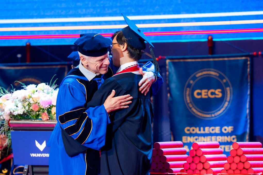 GS Laurent El Ghaoui - Hiệu phó phụ trách Nghiên cứu và Đổi mới sáng tạo, Viện trưởng Viện Kỹ thuật Và Khoa học Máy tính Trường ĐH VinUni xúc động khi trao bằng tốt nghiệp.