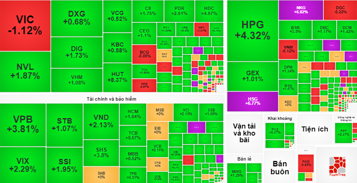 Sắc xanh bao trùm giúp VN-Index tiếp tục tăng điểm