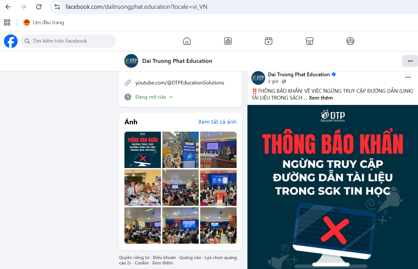 Đến chiều 9/4, Tập đoàn giáo dục Đại Trường Phát (DTP Group) - đơn vị phát hành cuốn vở đã thông tin chính thức về một sự cố an ninh mạng nghiêm trọng liên quan đến các đường dẫn (link) và mã QR truy cập học liệu điện tử được in trong nội dung Sách giáo khoa Tin học do DTP phát hành.