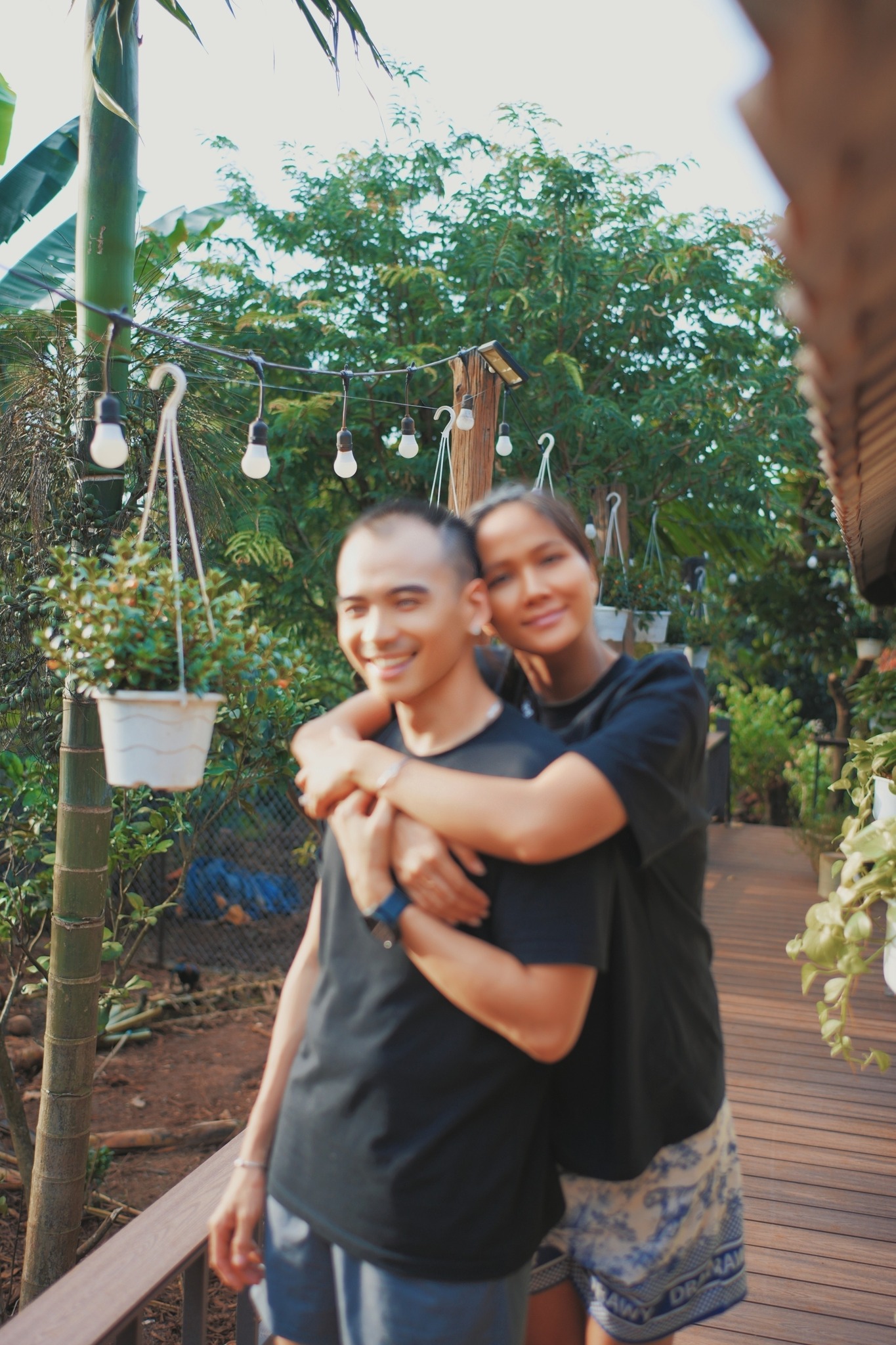 Trong hình, vợ chồng H'Hen Niê diện trang phục giản dị với áo phông, quần đùi. Hoa hậu hoàn vũ Việt Nam tự tin khoe mặt mộc ở những tháng cuối thai kì. Nhìn những hình ảnh của Hen nhiều người không nghĩ đây là một hoa hậu vì quá đỗi chân chất, bình dị, không phấn son, quần áo hàng hiệu như nhiều mỹ nhân đình đám khác.