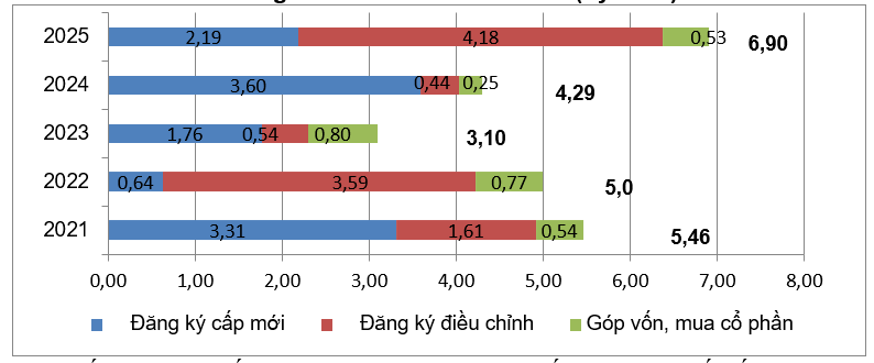 Tổng vốn đầu tư nước ngoài đăng ký vào Việt Nam hai tháng đầu năm 2025 bao gồm: Vốn đăng ký cấp mới, vốn đăng ký điều chỉnh và giá trị góp vốn, mua cổ phần của nhà đầu tư nước ngoài đạt gần 6,9 tỷ USD, tăng 35,5% so với cùng kỳ năm trước.