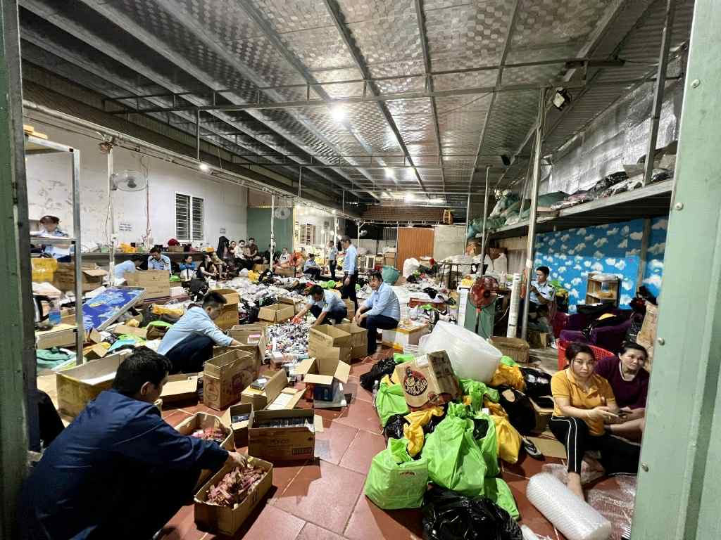 Kho sản phẩm giả mạo, hàng nhập lậu của hộ kinh doanh Trương Ngọc Quyên (Gia Lai) kinh doanh online bị bắt giữ đầu tháng 11/2023.