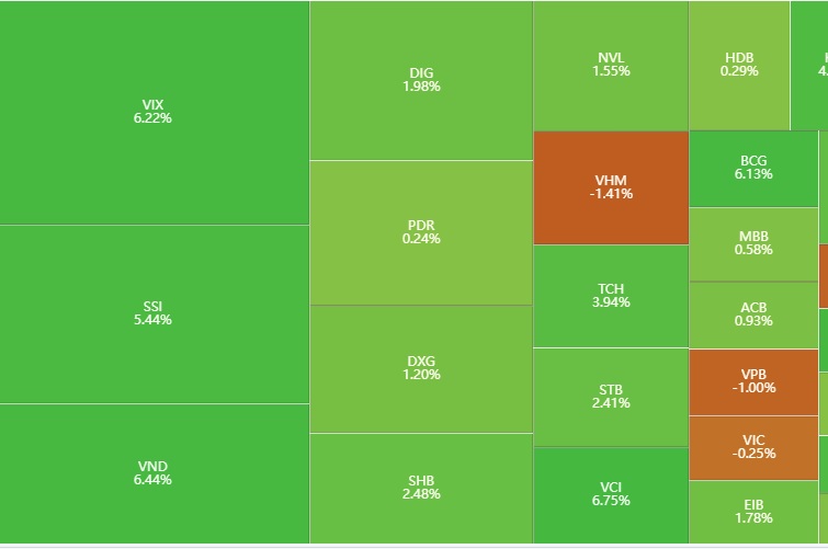 Nhóm cổ phiếu chứng khoán tăng mạnh kéo thị trường lấy lại sắc xanh phiên 1/11.